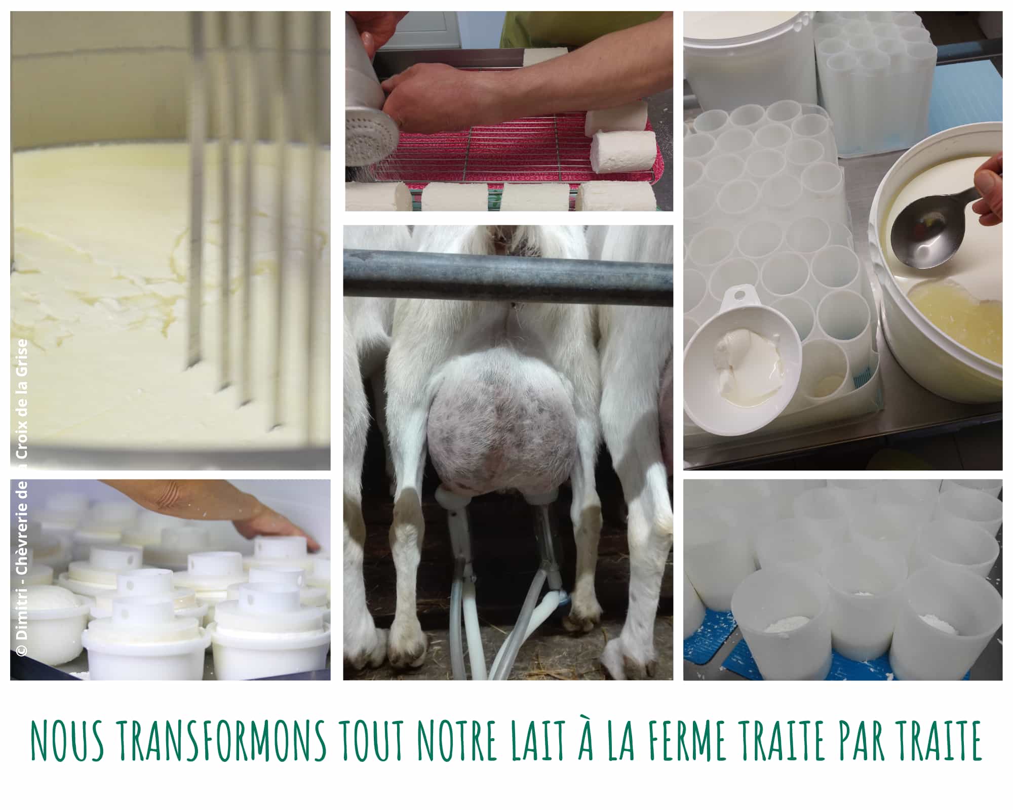 Nos chèvres sont nourries exclusivement avec des aliments simples produits à la ferme : des prairies diversifiées (pâturage, préfané et foin) et un mélange de céréales et de légumineuses . Leur lait est exempt de produits chimiques de synthèse, d’antibiotiques et d’OGM.